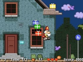 Sint Nicolaas is a very delightful platform game. Sint Nicolaas is a small PC game about a Dutch tradition, Sinterklaas (Saint Nicholas). Every year Sint Nicolaas comes all the way from Spain to Holland to give presents and gingerbread cookies to the children. On December 5th, at night, Sint travels over the roofs and drops the presents and cookies through the chimneys. In this game you must try to collect all the presents and cookies and take them to the correct chimneys, while facing many kinds of dangers. The colors of the presents correspond with colors on the chimneys and each chimney has the number of required cookies written on it. In the game Sint Nicolaas, time is limited, you must deliver all the presents before morning breaks!