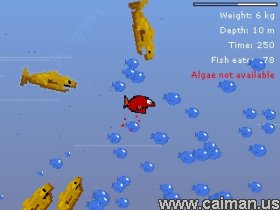 In this minigame, you are first a small fish that needs food to survive. Start with plankton and harmless small fish, then after you have grown bigger, you can eat also bigger fish. In order to survive, you must frequently gain energy by eating algae that is available only in the deep waters. However, there are also many crual predators seeking to tear you to pieces, so be careful. At best, it's possible to grow to weigh even over 20 tonnes!