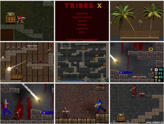 Tribes X is outstanding 2d shooter with a side view and gameplay which resembles Quake III, Tribes II & UT. This game is a team-shooter with good graphics and nice sounds. Due to the multitude innovations, upgraded game engine the game became more interesting. Except for the basic game types (TDM, CTF, DOM, RAIL, DM) There have been added some new types (such as: AST,SKY,MTX and others). Also, there have been added some new objects, partially are changed some textures, sounds. There is an opportunity to create scripts, configs, to record and play demos. The basic game package has many maps, bots, some quality models, simple and convenient map editor...