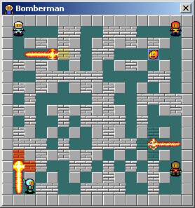 Een bomberman voor 2 tot 4 spelers (3 op het toetsenbord, speler 4 met joystick). De computer kan niet zelf als speler optreden, dus ge zult een speelmakker moeten zoeken.